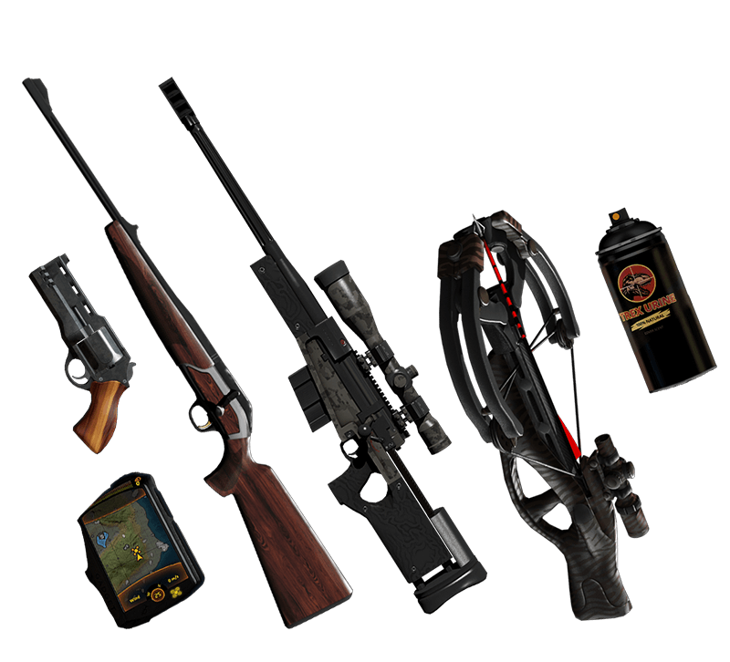 Choose between a high caliber rifle and a silent crossbow and don't forget your trusty side gun. And make sure to mask yourself from animals with CoverScent!